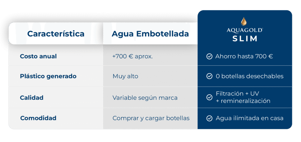 Ahorra dinero, gana salud y cuida el planeta. Con AQUAGOLD disfrutas agua pura todos los días, sin esfuerzo y sin plásticos.